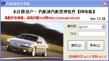 汽配號(hào)登錄窗口(如下圖),如果您之前有注冊(cè)QP號(hào),您可以用之前注冊(cè)的QP號(hào)和密碼在此登錄即可。非注冊(cè)會(huì)員無法打印銷售單,無法設(shè)置公司名稱及聯(lián)系方式,庫(kù)存只能存放200件單品。