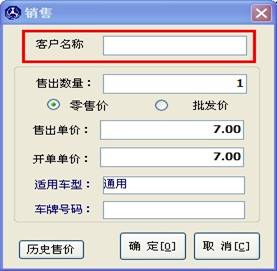 客戶名稱框里輸入內(nèi)容,如果此客戶購(gòu)買過此配件,那么在窗口的右邊將調(diào)出此客戶的購(gòu)買記錄及價(jià)格,如下圖