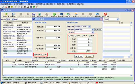當(dāng)客戶所要購(gòu)買的配件都添加到下方的表格后,點(diǎn)擊上方的結(jié)算按鈕,進(jìn)入結(jié)算操作
