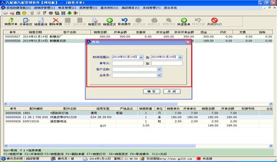 點(diǎn)擊銷售查詢按鈕可查詢以往更多的銷售單,如下圖,可以按開單時(shí)間查,也可以按單號(hào)查。