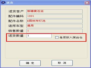 點(diǎn)擊“退貨”按鈕后會(huì)彈出如下圖的窗口,在退貨數(shù)量里輸入退貨數(shù)。