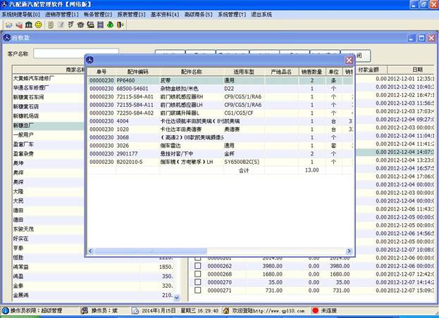 選擇右邊的某一個(gè)單子,點(diǎn)擊上方的“明細(xì)”按鈕可以查看此單子的配件明細(xì),如下圖