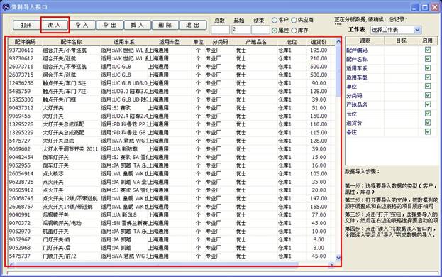 再點(diǎn)上方的“讀入”按鈕,將Excel 數(shù)據(jù)讀入到軟件里,如下圖
