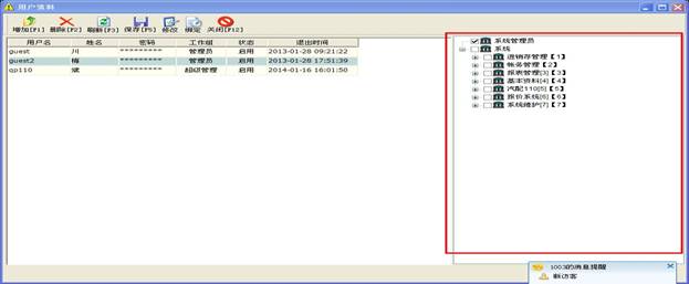 操作員管理此窗操作相對(duì)簡(jiǎn)單,都是些添加,刪除,修改的操作,這里有一點(diǎn)要注意,當(dāng)您添加了一個(gè)新操作員時(shí)記得將右邊的權(quán)限勾上,要不然新的操作員登錄上去后什么權(quán)限都沒有,什么東西都操作不了。