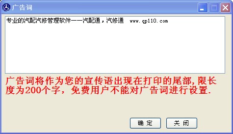 此廣告詞設(shè)置后將在銷售單的下方顯示,且此功能只有增強(qiáng)版和網(wǎng)站版使用,單機(jī)版不能對(duì)廣告詞進(jìn)行修改,且廣告詞為我們汽配通的廣告詞。